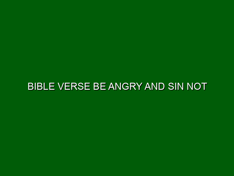 Unpacking the Bible Verse: "Be Angry and Sin Not"